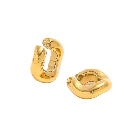 أقراط كفة جديدة مطلية بالذهب عيار 18 قيراط غير منتظمة مكتنزة ومموجة من الفولاذ المقاوم للصدأ أقراط نسائية عصرية