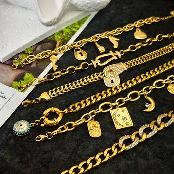 سوار سلسلة كوبية مطلية بالذهب عيار 18 من الفولاذ المقاوم للصدأ سوار سلسلة مجوف من الحجر الطبيعي